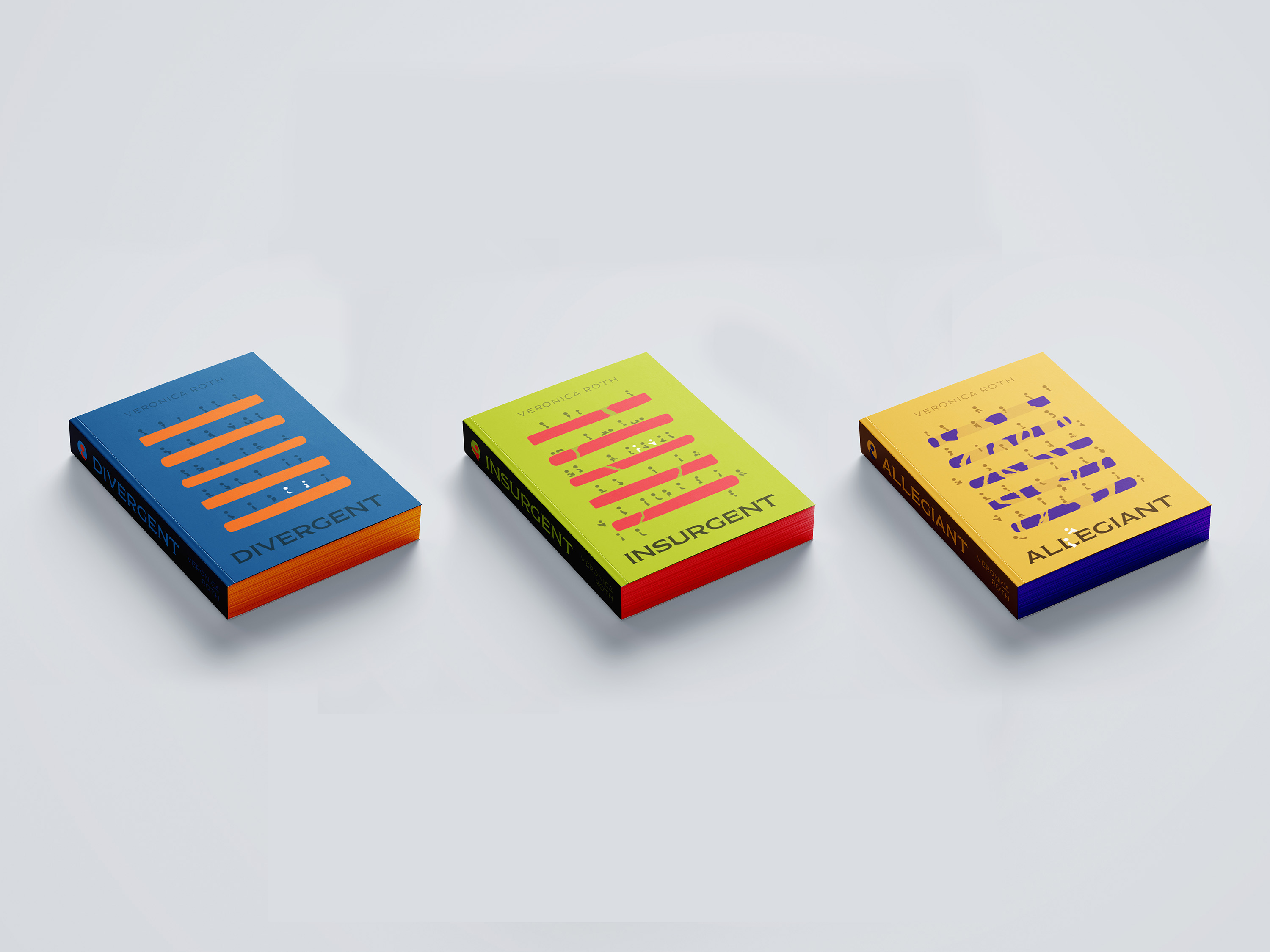 Designed book covers for the Divergent trilogy, capturing its dystopian essence, protagonist's journey, and thematic elements, ensuring visual intrigue and coherence across the series.